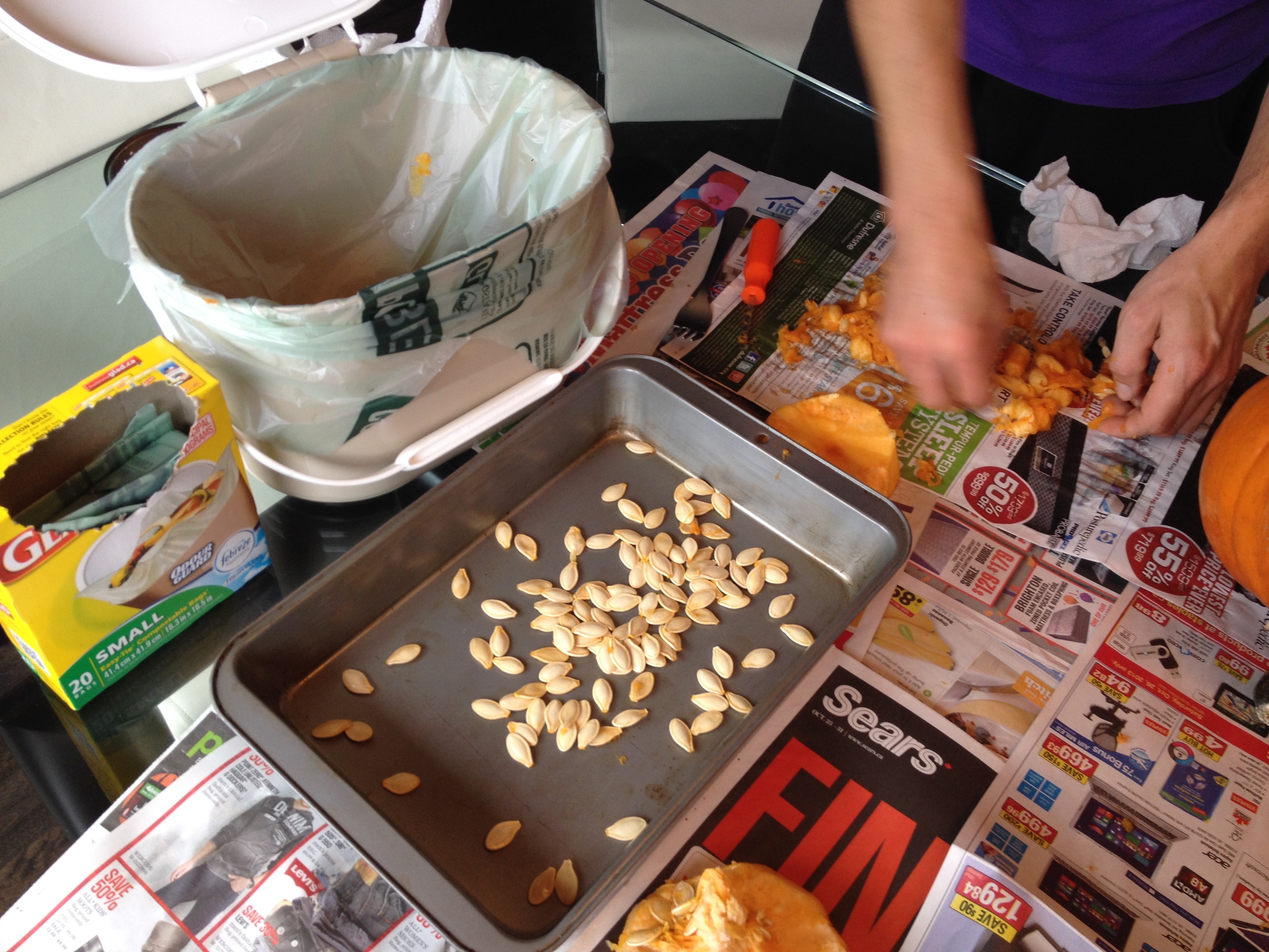 3) We started to fill up our GLAD® compostable bag in its bin quite quickly. As much as it seemed yucky and messy, we all loved taking out the pumpkin guts and separating the seeds!
