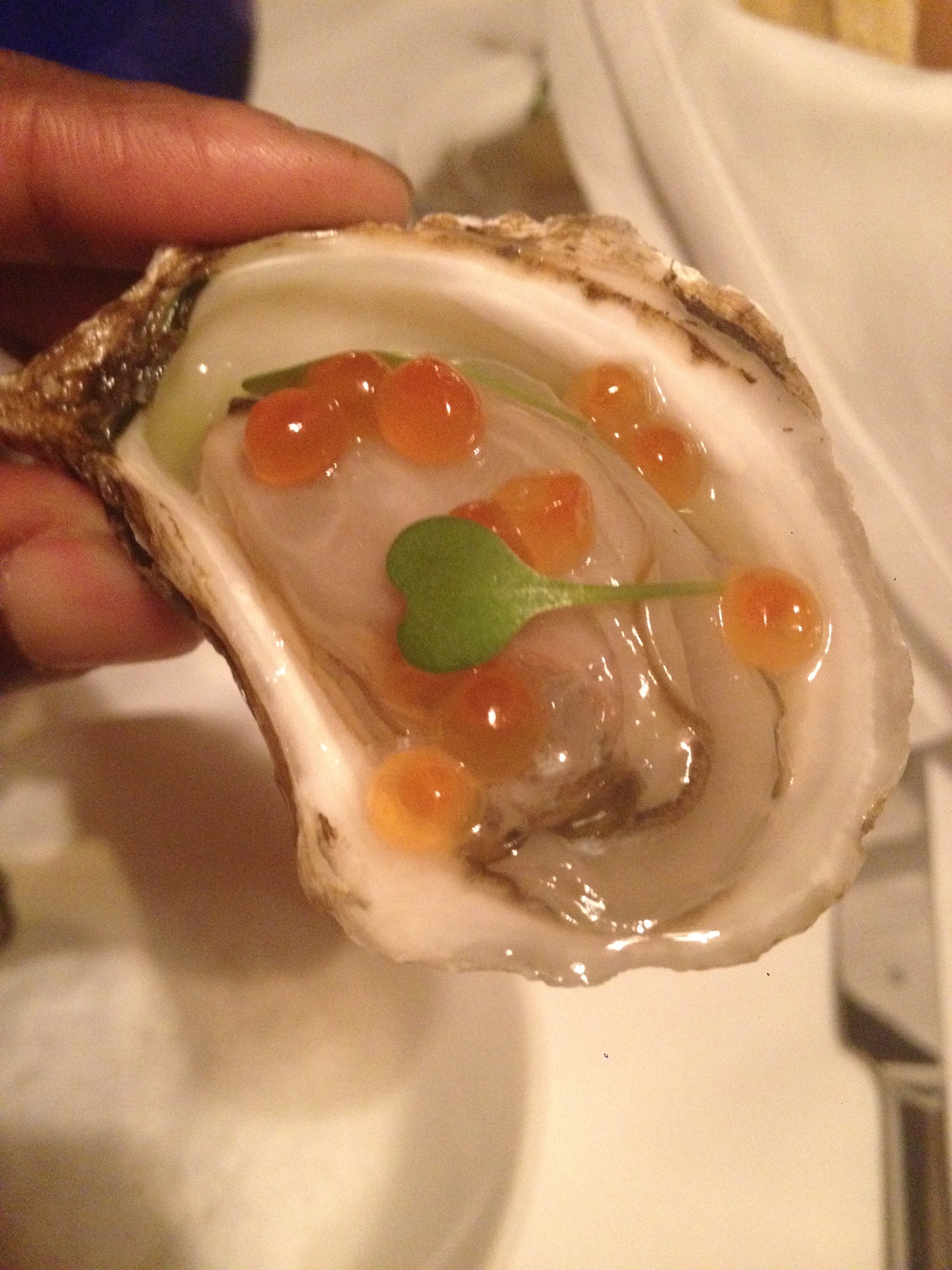 After trying oysters for the first time last year, I wasn’t sure about how I’d feel eating them again. This delectable take on “Oysters and Pearls” was so tasty! With oysters ordered directly from PEI, we could taste the freshness. Complemented by cucumber gelee and salmon caviar, it was the perfect way to start our meal.