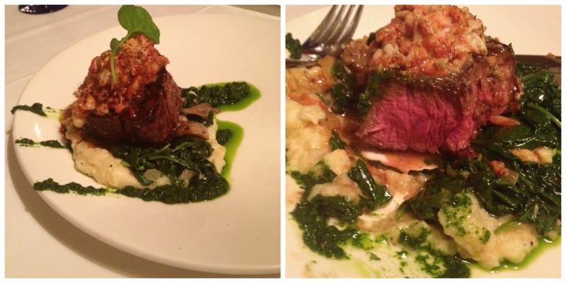 Lawd! Yes, I said lawd! A perfectly cooked Lobster-Crusted Beef Tenderloin with truffle pomme de terre puree, spinach, mushrooms, hazelnut jus and parsley puree. Yum, yum, yum! I’m not sure I can put this taste into words, but let me tell you my fiance was one happy man. He happens to work with beef suppliers often and knows his way around various cuts of meat so when he said it was perfect, I knew he was right!