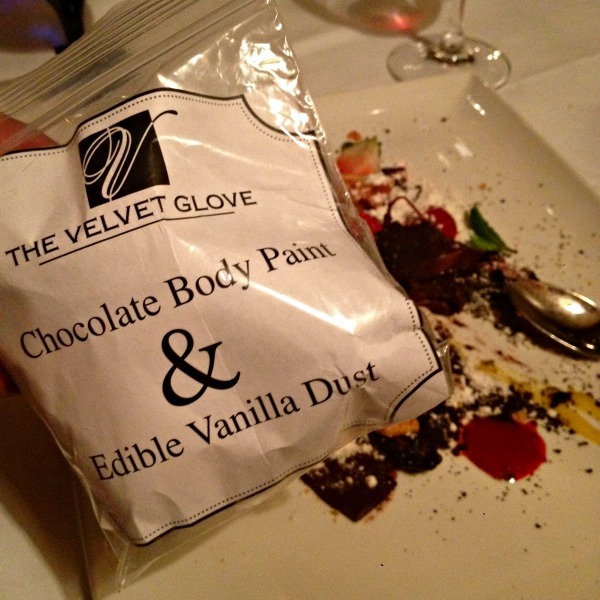 I almost forgot! You can’t have a Valentine’s Day without a special treat, you know, something to spice up the remainder of your evening? Before you leave the Velvet Glove, you’ll receive this: