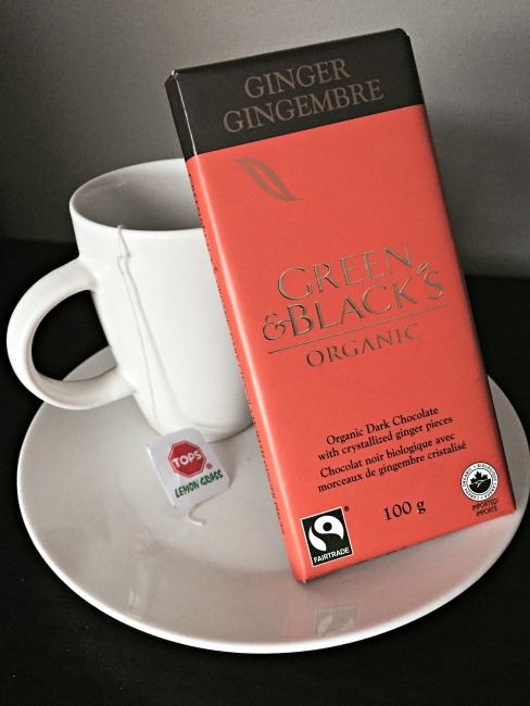 b) PegCityLovely’s Green & Black’s Organic Ginger paired with Jamaican Fever Grass (Lemongrass) Tea