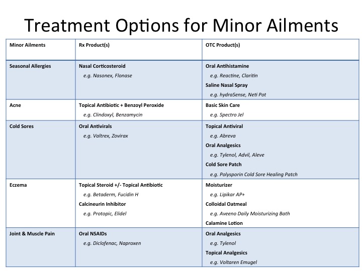 Here are some treatment options for minor ailments: