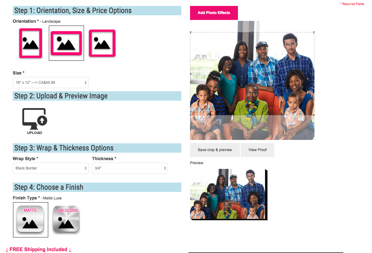 - Single Panel Canvas Print – this is the one I chose because our family photo has numerous people in it, I just want a simple print.